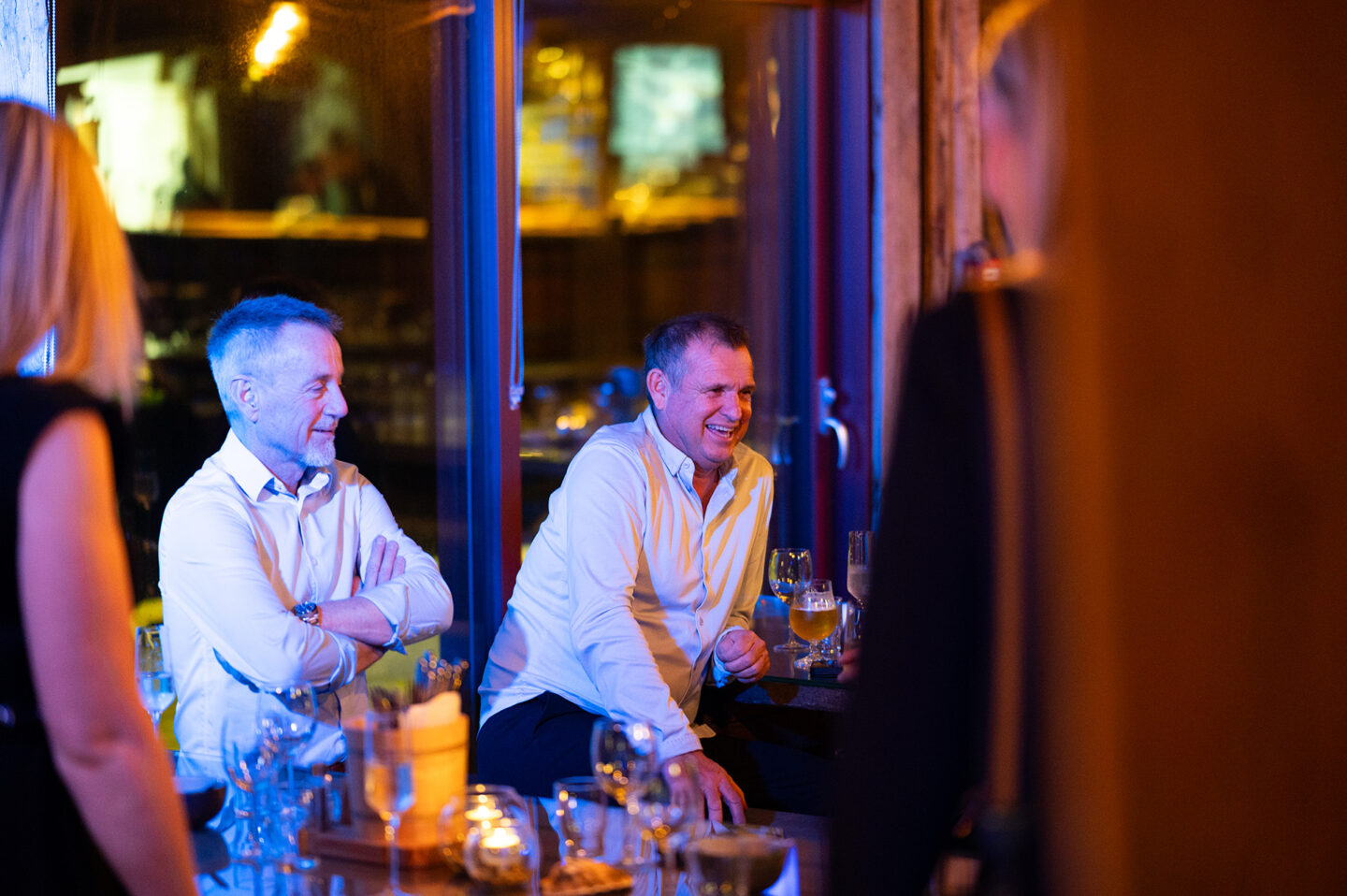 For mens vestlandsværet fikk holde på utenfor ble gjestene fraktet i buss over moloen. Videre bar det inn i rustikke, historiske Mortholmen, og kvelden ble akkurat det vi ønsket – en begivenhet preget av nettverksbygging, latter, god mat og drikke.